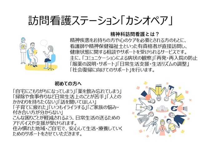 訪問看護 … 訪問看護ステーション「カシオペア」(詳しくは当院までお問合せ下さい)